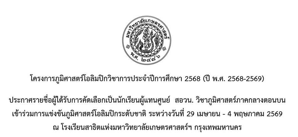 (แก้ไขคุณสมบัติ) ประกาศรับสมัครเพื่อเข้าร่วมโครงการภูมิศาสตร์โอลิมปิก (ค่าย 1) ประจำปีการศึกษา 2568